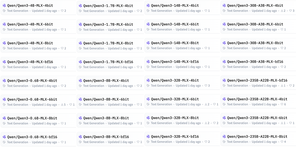 据了解,MLX框架以其高效训练和部署AI大模型的能力而著称。此次阿里巴巴决定将Qwen3系列的全部官方模型一次性全面开源,旨在进一步提升开发者对苹果设备的AI应用支持。值得注意的是,每款Qwen3模型均提供了4bit、6bit、8bit和BF16四种不同精度的量化版本,以满足多样化的开发需求。
